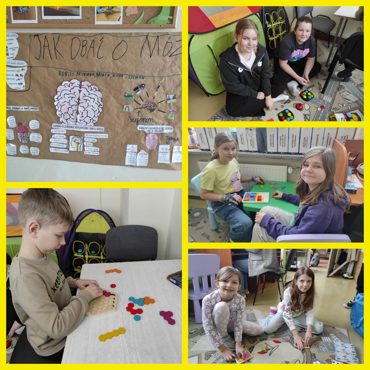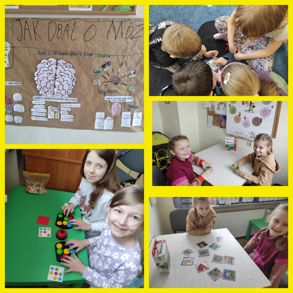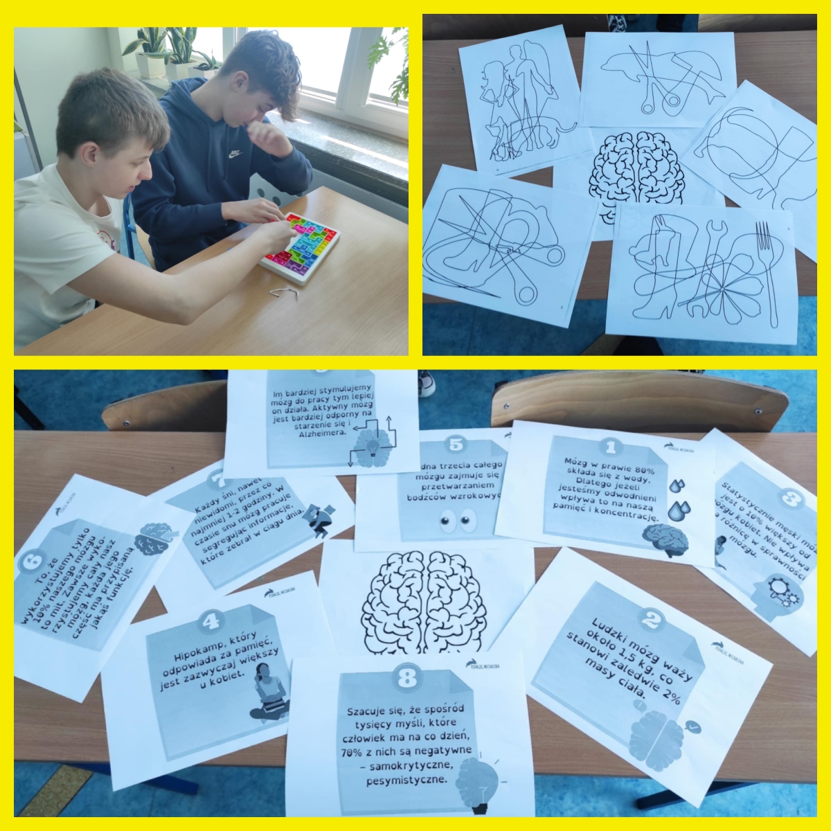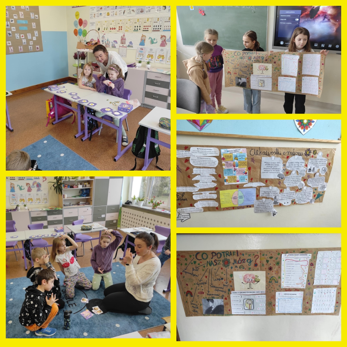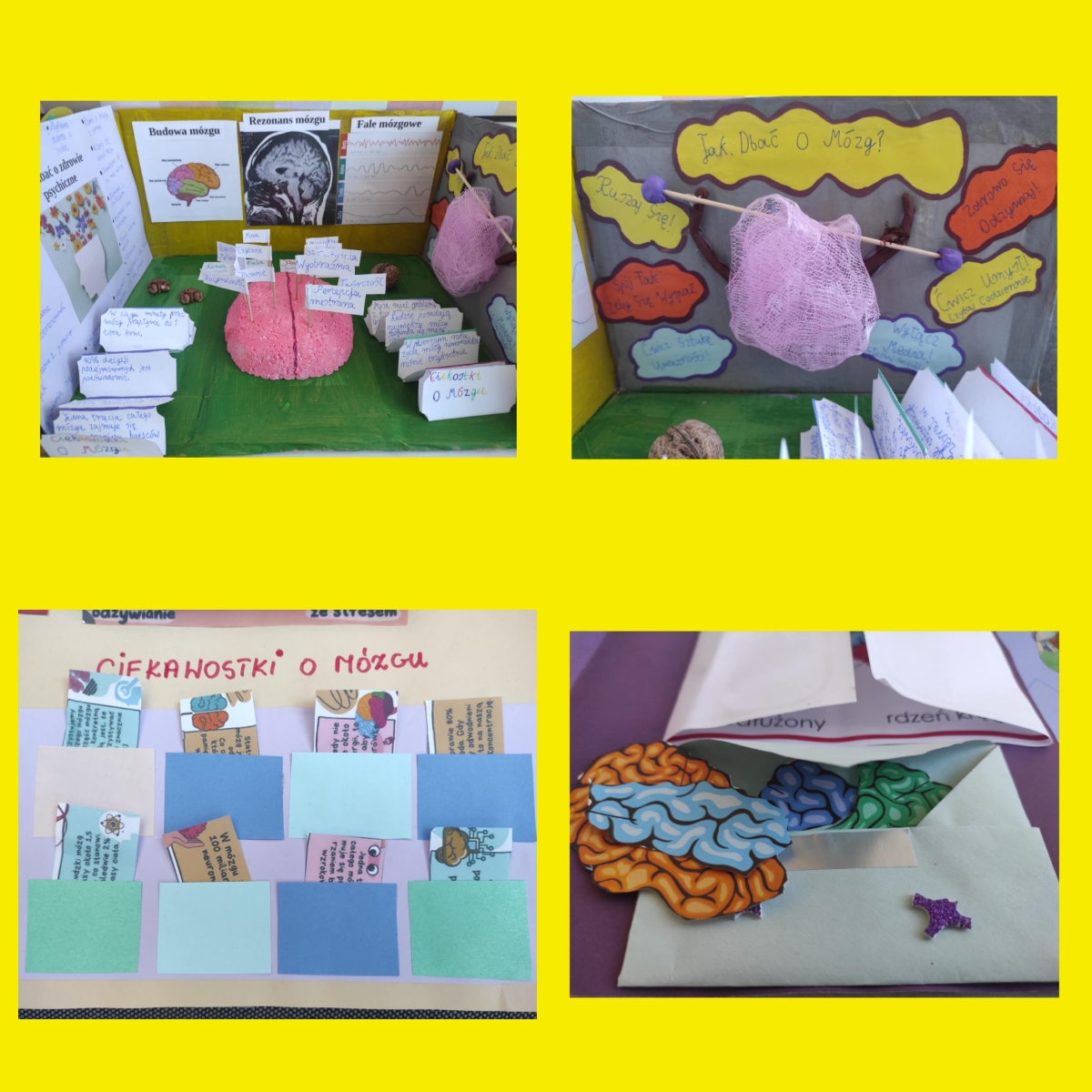 W kolejnych dniach odbyły się zajęcia warsztatowe prowadzone przez psychologa i pedagoga specjalnego w trakcie, których uczniowie dowiedzieli się jak zbudowany jest mózg, jak ważną rolę pełnią poszczególne jego części oraz jak dbać o prawidłowy rozwój mózgu i wpływać na jego sprawność. Uczniowie wykonali plakaty, które zawisły na szkolnych korytarzach. Ponadto chętni uczniowie wzięli udział w rozgrywkach, podczas których mieli okazję spróbować swoich sił w rozwiązywaniu różnych zagadek logicznych i ćwiczeń stymulujących pracę mózgu. Wszyscy zostali nagrodzeni dyplomami oraz upominkami. Dodatkowo został ogłoszony konkurs -„Twój MÓZG – Twoja MOC” – Lapbook pełen wiedzy i zdrowia, którego wyniki zostaną ogłoszone podczas uroczystości z okazji Pierwszego Dnia Wiosny.