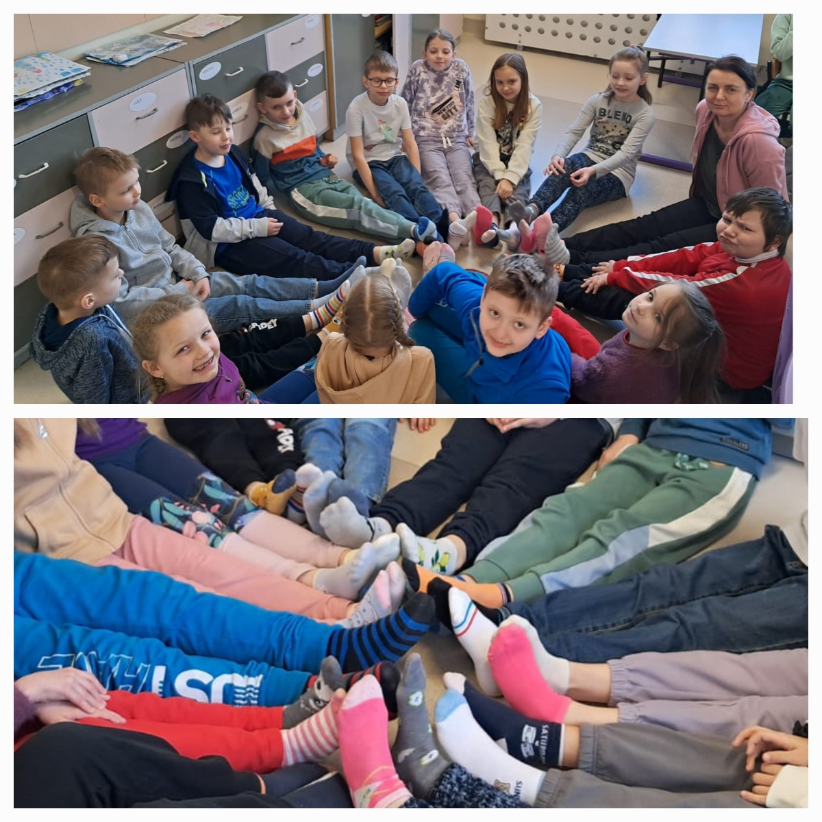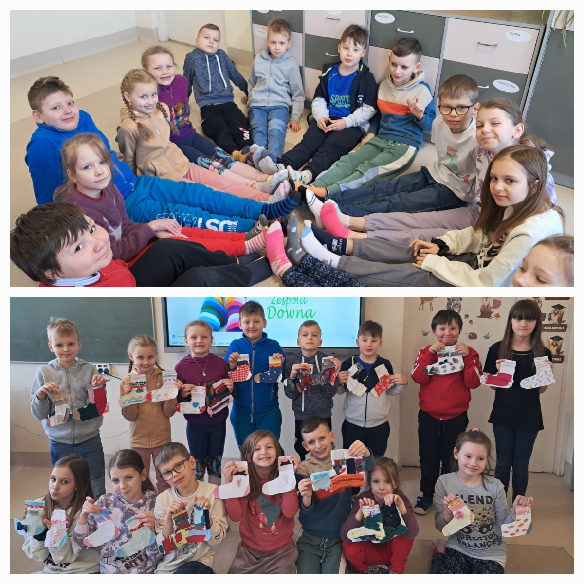 Otwartości wobec odmienności ludzi, tolerancji, szacunku uczymy od najmłodszego. Przedszkolaki oraz uczniowie klas 2 i 3 wzięli udział w obchodach Dnia Kolorowej Skarpetki – święta, które ma na celu zwiększanie świadomości o osobach z zespołem Downa. Podczas zajęć uczniowie poznali historię tego wyjątkowego dnia oraz jego znaczenie. W ramach kreatywnych warsztatów wykonali własne, kolorowe skarpetki ze skrawków materiałów, rozwijając przy tym swoją wyobraźnię i zdolności manualne.