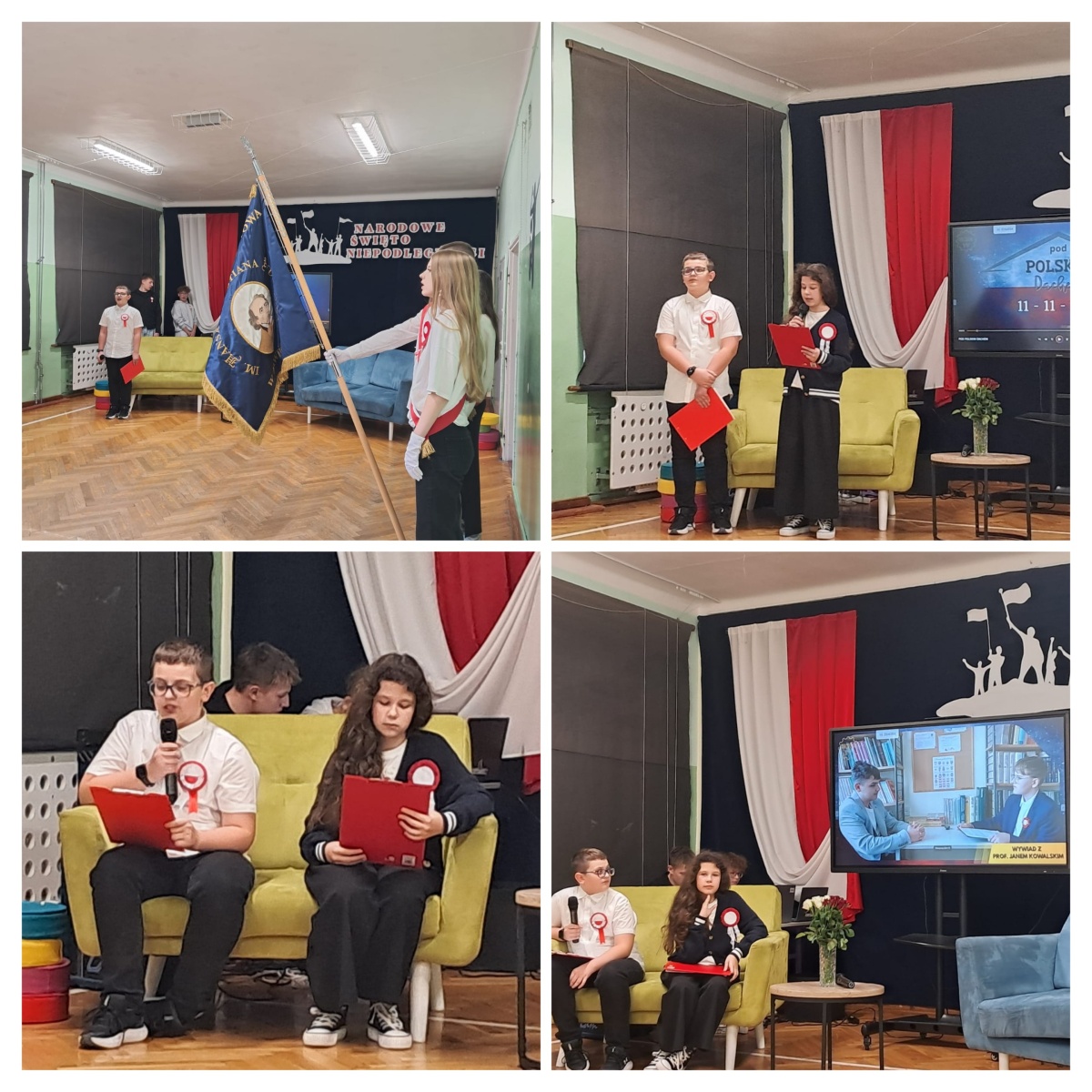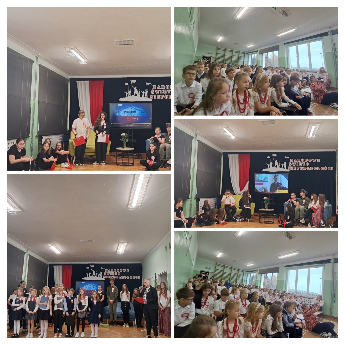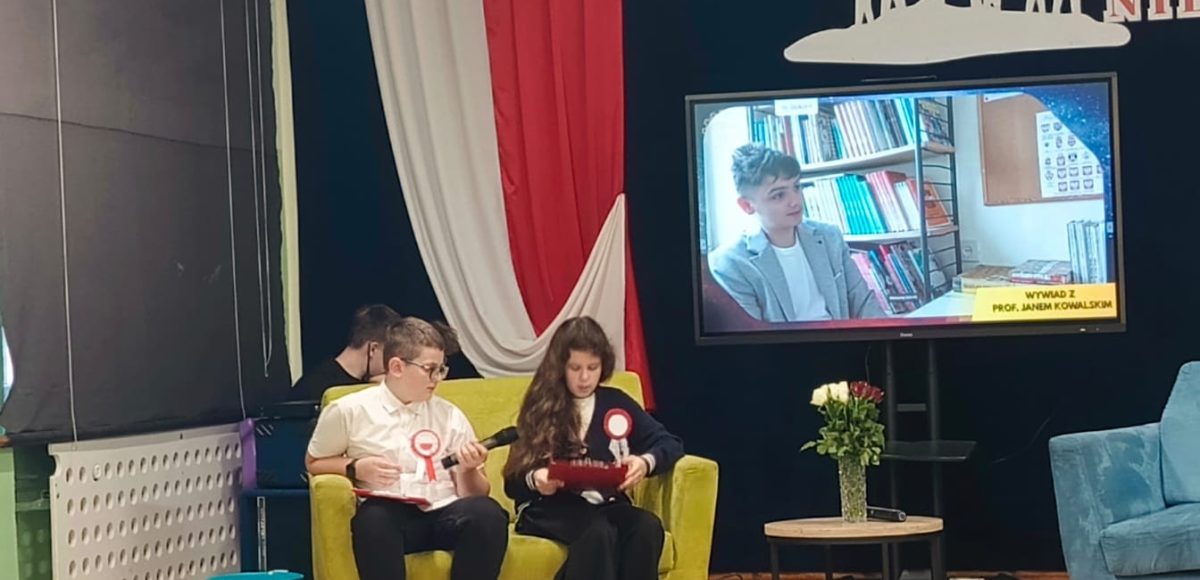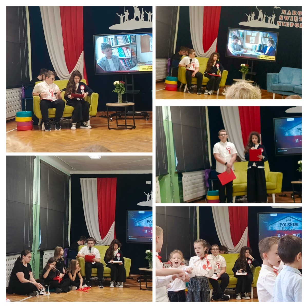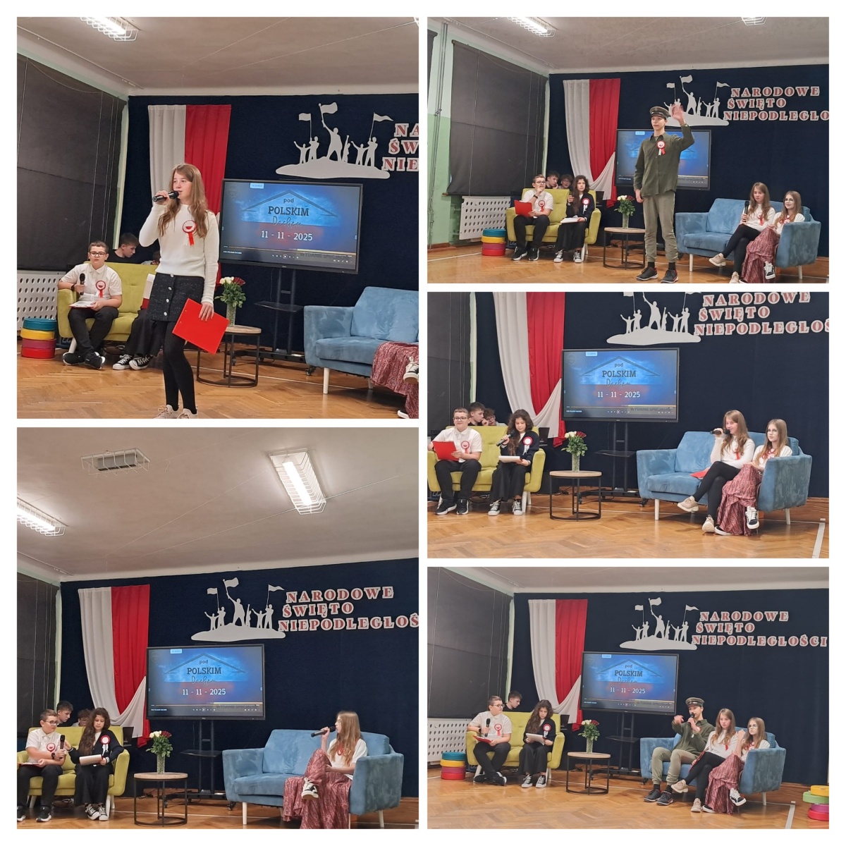 12 listopada w naszej szkole odbyła się wyjątkowa uroczystość z okazji Święta Niepodległości. Tym razem zebrani zostali zaproszeni do studia telewizyjnego programu „Pod polskim dachem”, gdzie rozmawiano o tym, czym jest ojczyzna i co dla nas znaczy słowo patriotyzm. W programie nie zabrakło występów artystycznych, pieśni patriotycznych, które stworzyły niepowtarzalny klimat pełen wzruszeń i dumy z bycia Polakiem. Publiczność miała okazję poczuć się jak w prawdziwym telewizyjnym studiu – z prowadzącymi, gośćmi i widzami, którzy wspólnie świętowali wolność i jedność naszego kraju.