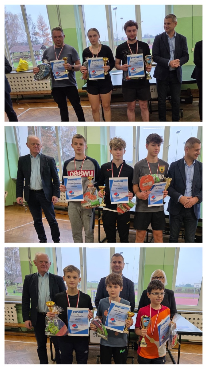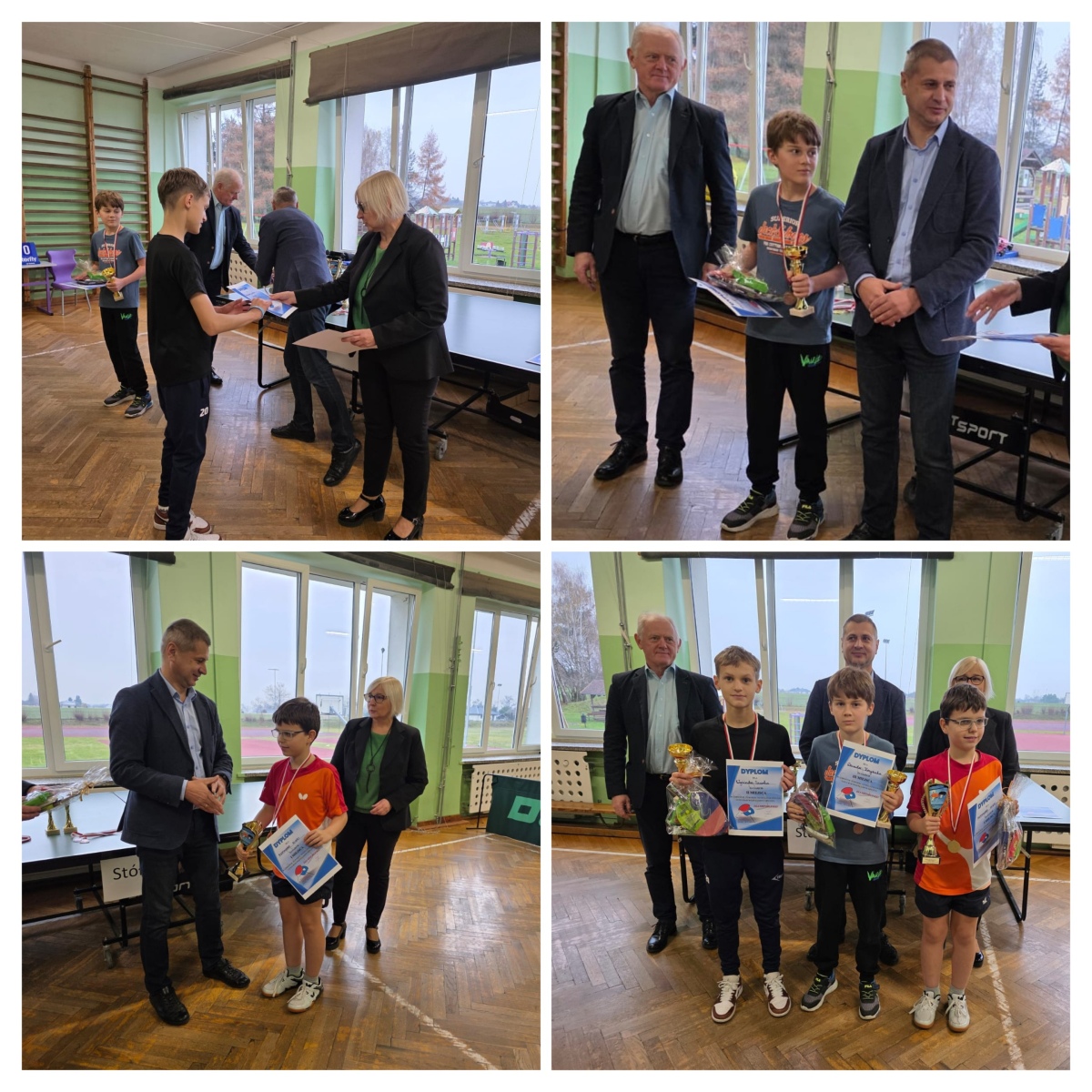 W niedzielę 16 listopada odbył się w naszej szkole Gminny Turniej Tenisa Stołowego o Puchar Wójta. Na sześciu stołach rywalizowało 52 zawodników w trzech kategoriach wiekowych, a szkolne korytarze przez kilka godzin tętniły sportową energią i zdrową rywalizacją. Po zaciętych meczach wyłoniono najlepszych zawodników, którzy zostali uhonorowani pucharami, medalami i nagrodami.