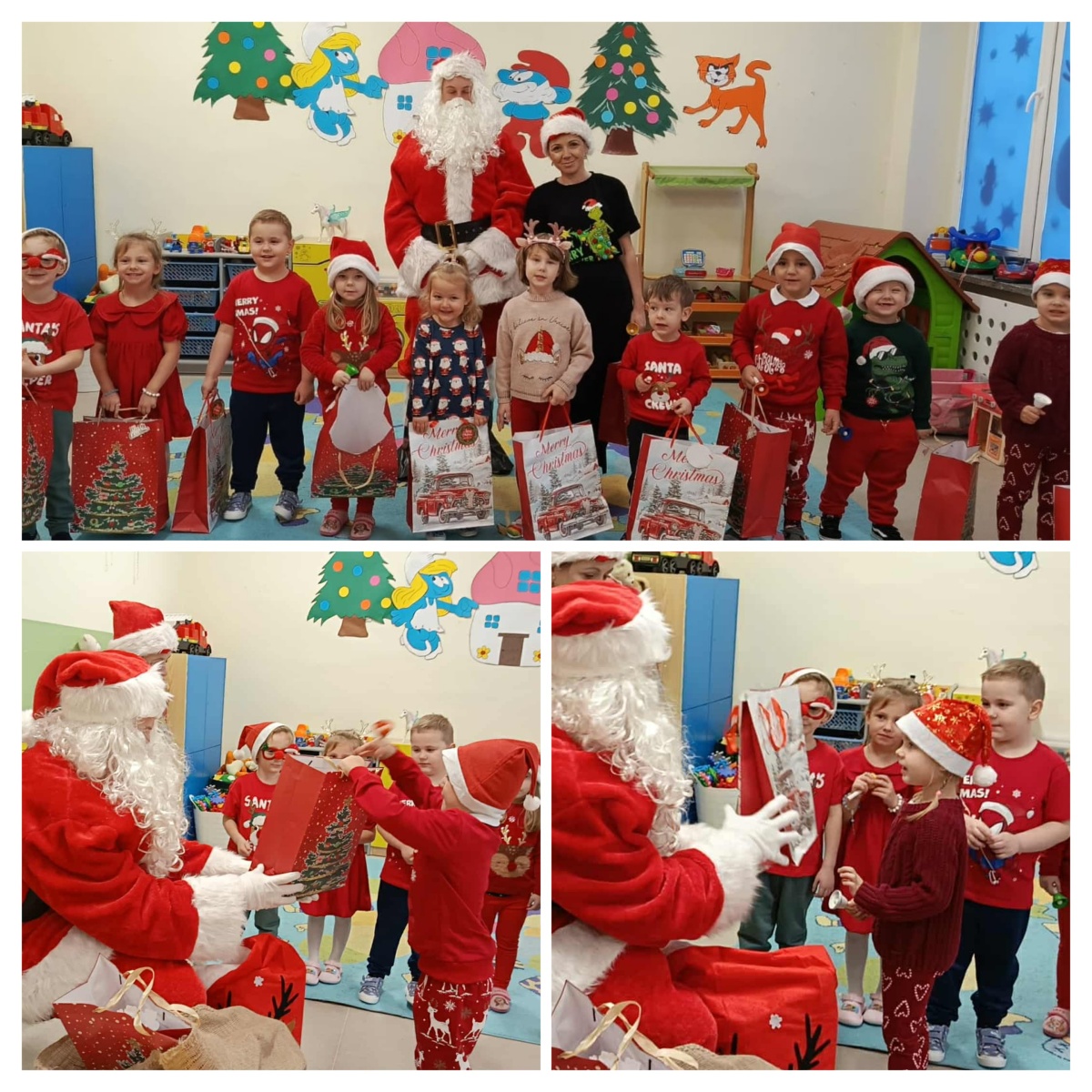 Co więcej, Mikołaj nie zapomniał o najmłodszych – odwiedził także przedszkolaków, którzy powitali go z ogromnym entuzjazmem i dziecięcą radością. A że najmłodsi byli w tym roku wyjątkowo grzeczni, odwiedziło ich aż dwóch Mikołajów! ( szkolny i gminny).