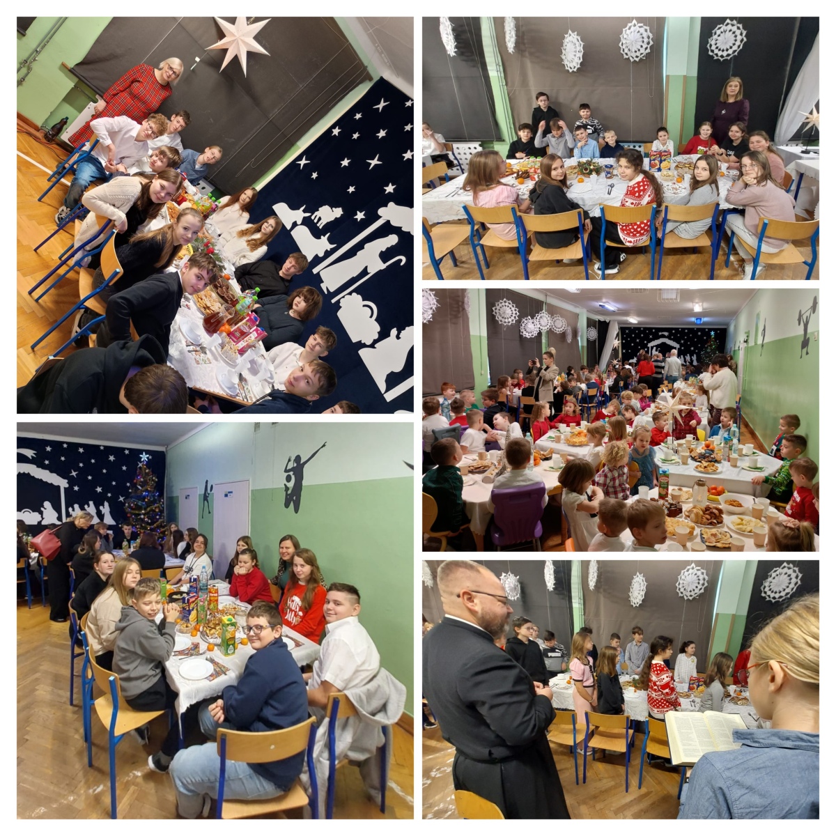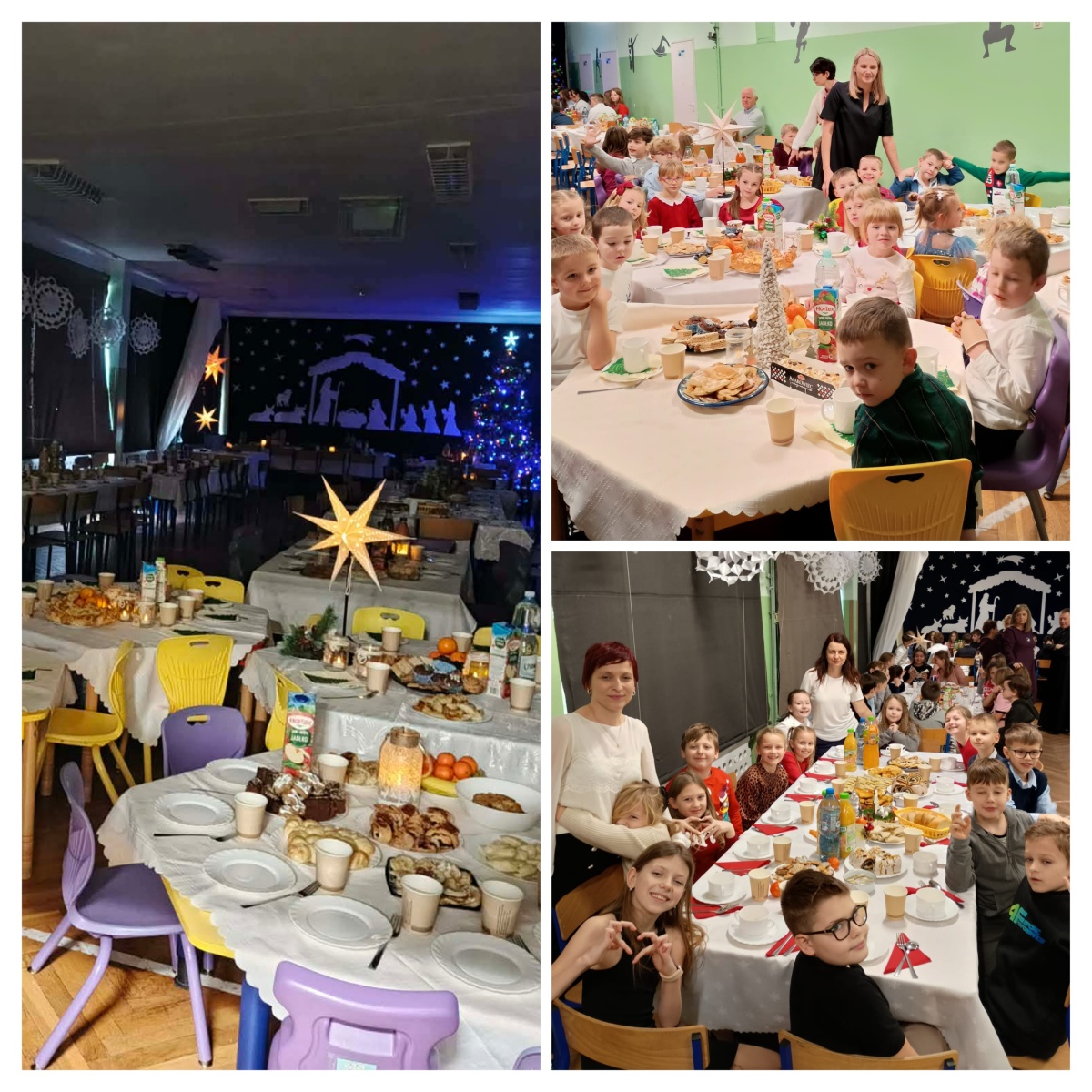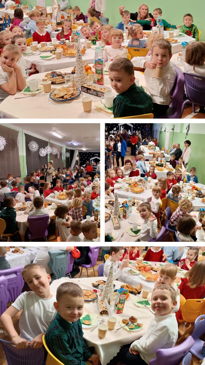 Dzieliliśmy się opłatkiem, kierując do siebie ciepłe życzenia, a stoły pełne świątecznych smakołyków zachęcały do wspólnego biesiadowania. W atmosferze radości i bliskości śpiewaliśmy kolędy i pastorałki, tworząc piękne, świąteczne wspomnienia. Był to czas pełen ciepła, tradycji i radości spędzonej razem.