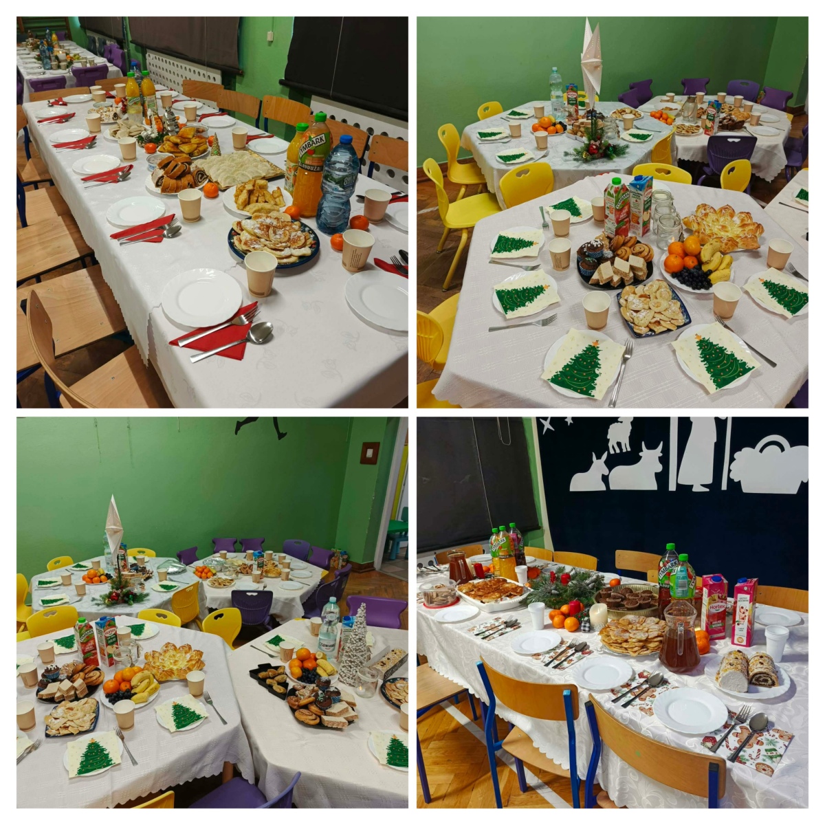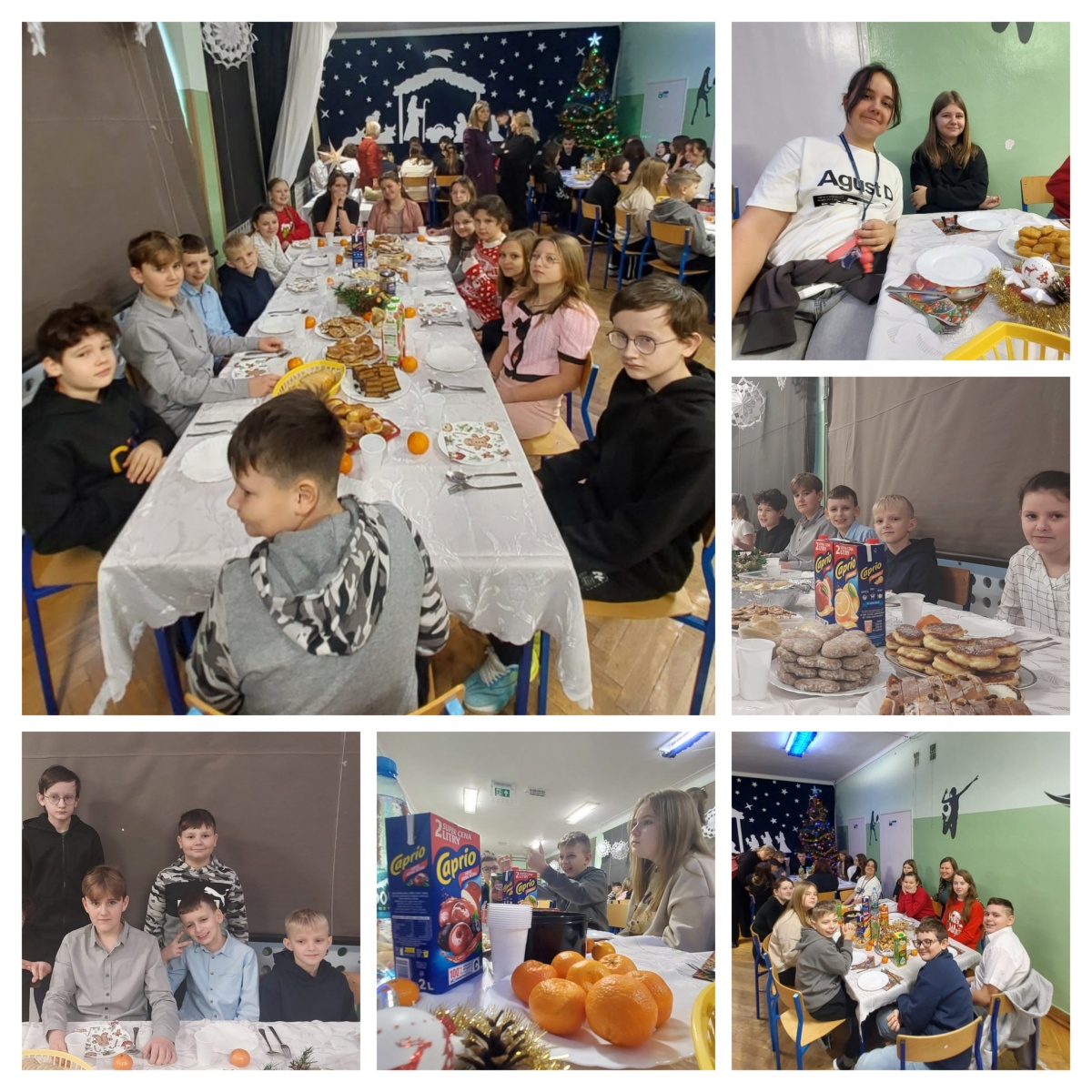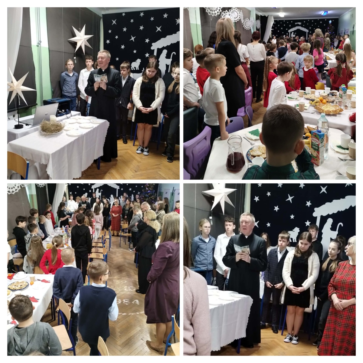Dzieliliśmy się opłatkiem, kierując do siebie ciepłe życzenia, a stoły pełne świątecznych smakołyków zachęcały do wspólnego biesiadowania. W atmosferze radości i bliskości śpiewaliśmy kolędy i pastorałki, tworząc piękne, świąteczne wspomnienia. Był to czas pełen ciepła, tradycji i radości spędzonej razem.