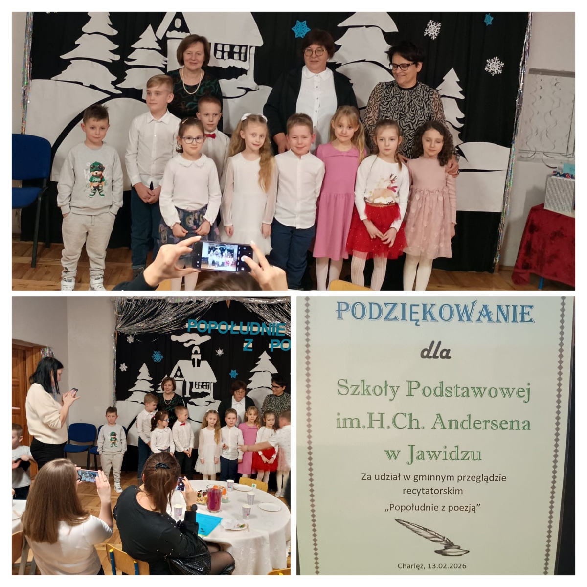 Przedszkolaki Julita i Ignacy wzięli udział w gminnym przeglądzie recytatorskim „Popołudnie z poezją”, który odbył się w Szkole Podstawowej im. Marii Konopnickiej w Charlężu. Tegorocznym motywem przewodnim była „Zima” – temat, który stał się inspiracją do wielu pięknych i pełnych emocji występów. Ignacy zaprezentował wiersz „Jedzie zima” autorstwa Czesława Janczarskiego, natomiast Julita wystąpiła z utworem „Pracowita zima” Krystyny Datkun-Czerniak. Serdecznie gratulujemy odwagi, doskonałej pamięci oraz scenicznej ekspresji. Życzymy dalszych sukcesów i nieustającej radości z rozwijania swoich talentów!