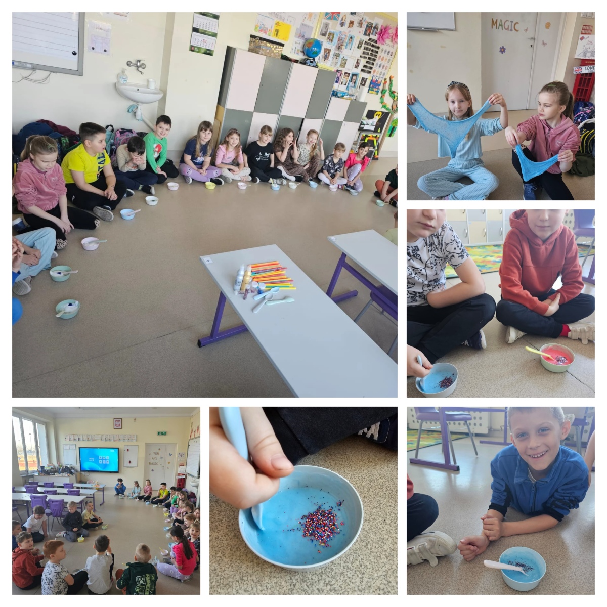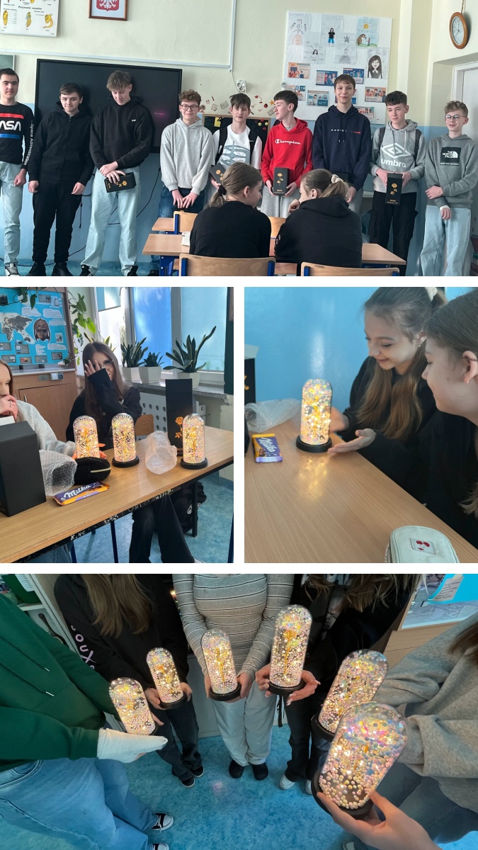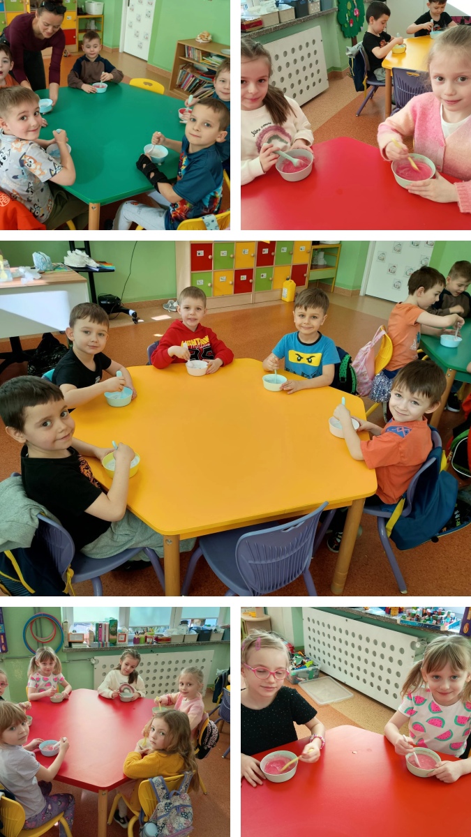 Z okazji Dnia Kobiet różne aktywności pojawiły się wśród naszych uczniów. W oddziale przedszkolnym „Biedroneczki” oraz wśród chętnych uczniów klas 1–2 odbyły się warsztaty robienia slime. Podczas zajęć dzieci własnoręcznie przygotowywały swoje kolorowe, brokatowe masy. Każdy uczestnik stworzył indywidualny slime, wybierając ulubione kolory i dodatki. Warsztaty sprawiły dzieciom wiele radości i były okazją do kreatywnej zabawy. „Mali Odkrywcy” świętowali ten dzień, bawiąc się przy tworzeniu kolorowych skrzatów. Oczywiście nie zabrakło także słodkiego poczęstunku oraz drobnych prezentów dla koleżanek. W pozostałych klasach dziewczynki również zostały miło uczczone – otrzymały symboliczne kwiatki lub drobne upominki, a uczniowie integrowali się podczas wspólnego poczęstunku pizzą.