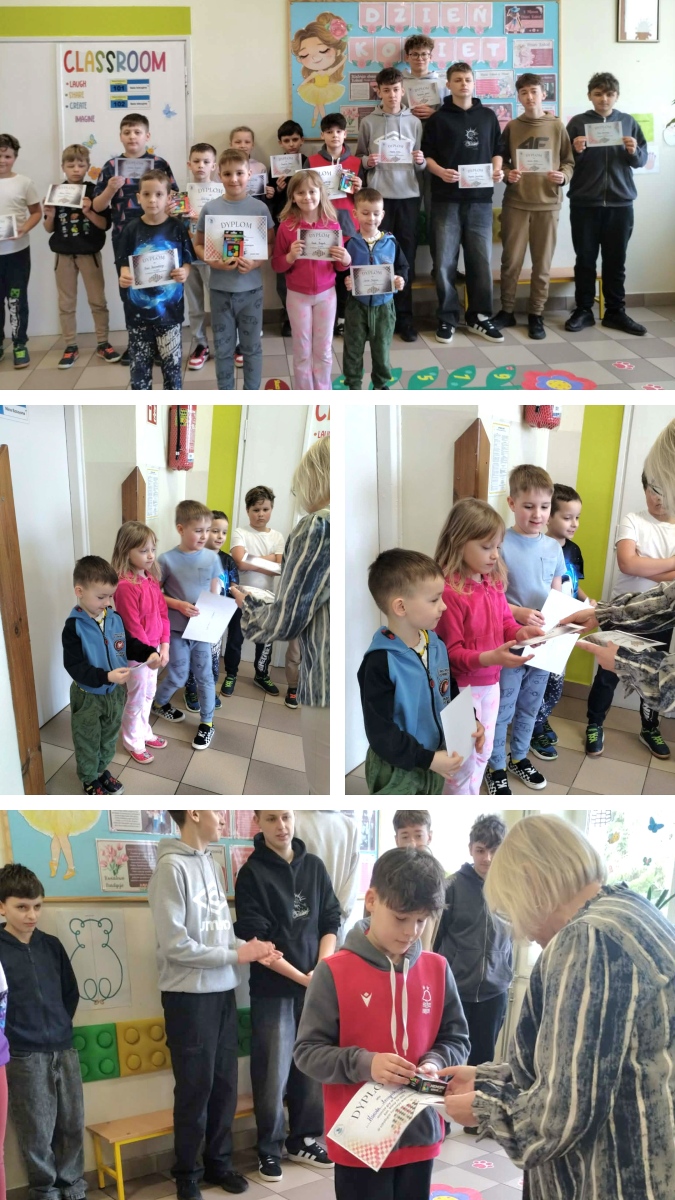 Szkolny Turniej Warcabowy trwał aż trzy dni, w którym wzięło udział łącznie 34 uczestników: 6 przedszkolaków oraz 28 uczniów klas 1–8. Zawody cieszyły się dużym zainteresowaniem i były doskonałą okazją do rozwijania logicznego myślenia.