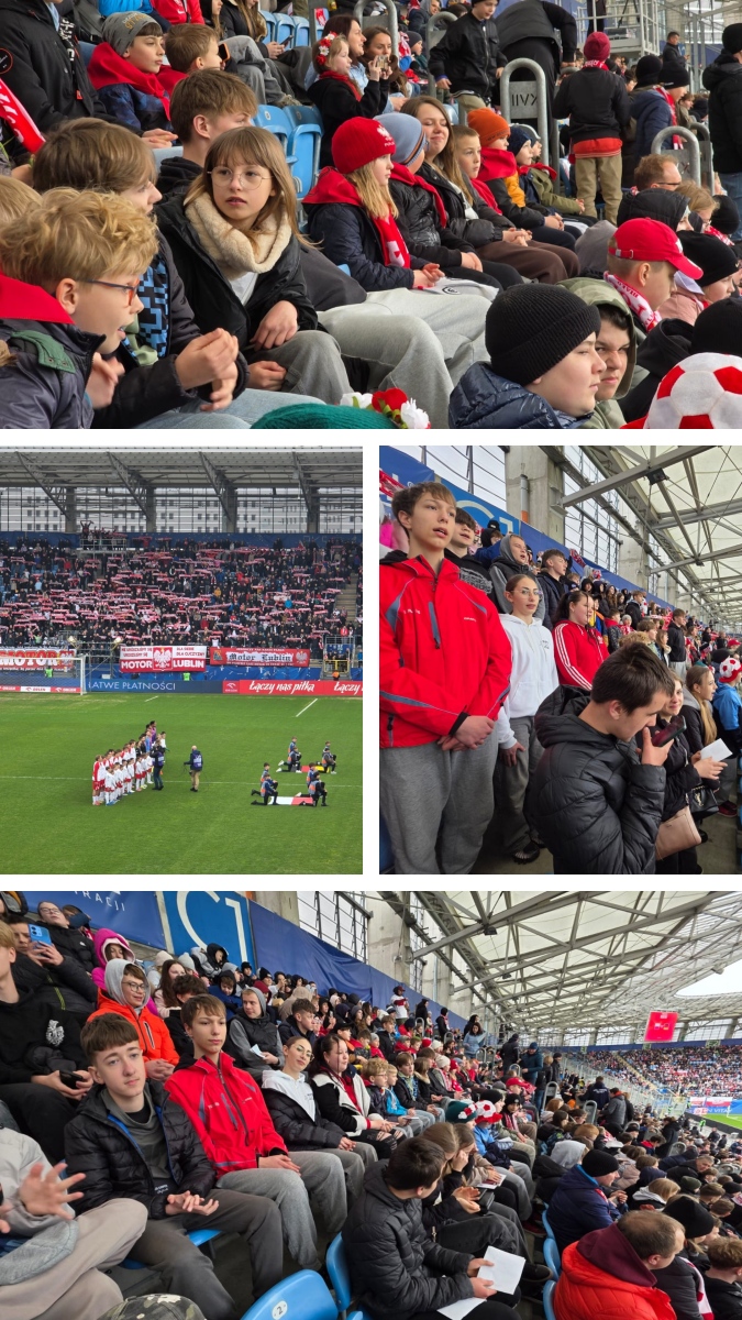 Dzisiejszy dzień obfitował w liczne atrakcje i niezapomniane wrażenia. W godzinach porannych zawitało do nas kino sferyczne, dzięki któremu uczniowie mogli przenieść się w fascynujące głębiny oceanu i odkrywać jego tajemnice. Była to ciekawa i inspirująca forma nauki, stanowiąca miłe urozmaicenie szkolnych zajęć. Po południu nie zabrakło sportowych emocji – wybraliśmy się na stadion Arena Lublin, gdzie odbył się towarzyski mecz reprezentacji U20 Polska–Niemcy w ramach turnieju Elite League. Atmosfera była niezwykle ekscytująca, a kibicowanie dostarczyło wszystkim wielu radości.