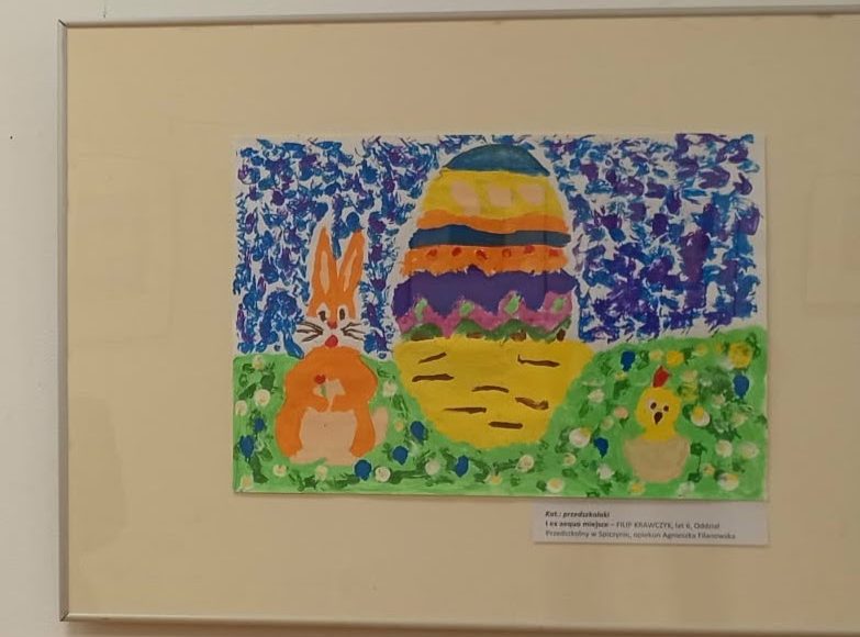 Z dumą informujemy, że I miejsce w kategorii przedszkolnej (5–6 lat) zdobył Filip z grupy „Biedroneczki”. Jego praca urzekła jury kreatywnością, dokładnością wykonania oraz pięknym odniesieniem do wielkanocnych tradycji.
