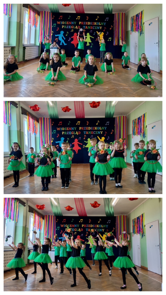 W czwartek w naszej szkole odbył się Wiosenny Przedszkolny Przegląd Taneczny, w którym uczestniczyły dzieci z sześciu przedszkoli z terenu gminy. Było to niezwykle radosne wydarzenie, pełne energii i dziecięcej spontaniczności. Mali artyści zaprezentowali kolorowe i pomysłowe choreografie, a każdy występ wyróżniał się starannością i dużym zaangażowaniem. Uśmiechy na twarzach dzieci szybko udzielały się publiczności, tworząc wyjątkową atmosferę. Przegląd stanowił nie tylko okazję do pokazania talentów tanecznych, ale także sprzyjał integracji przedszkolaków z różnych placówek. Wspólna zabawa, rozmowy oraz wzajemne wsparcie pozwoliły nawiązać nowe znajomości i zbudować przyjazne relacje.
