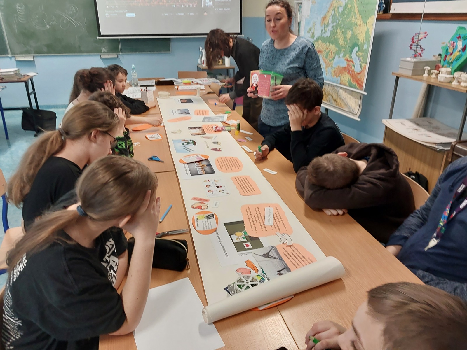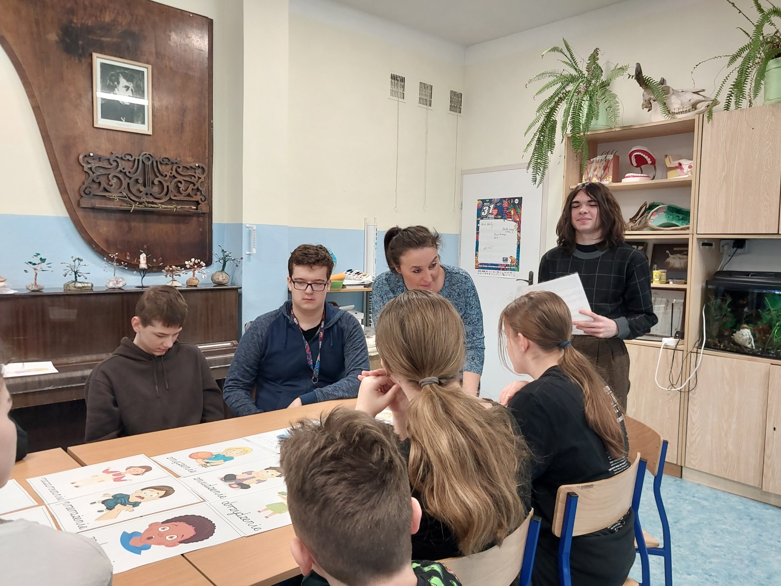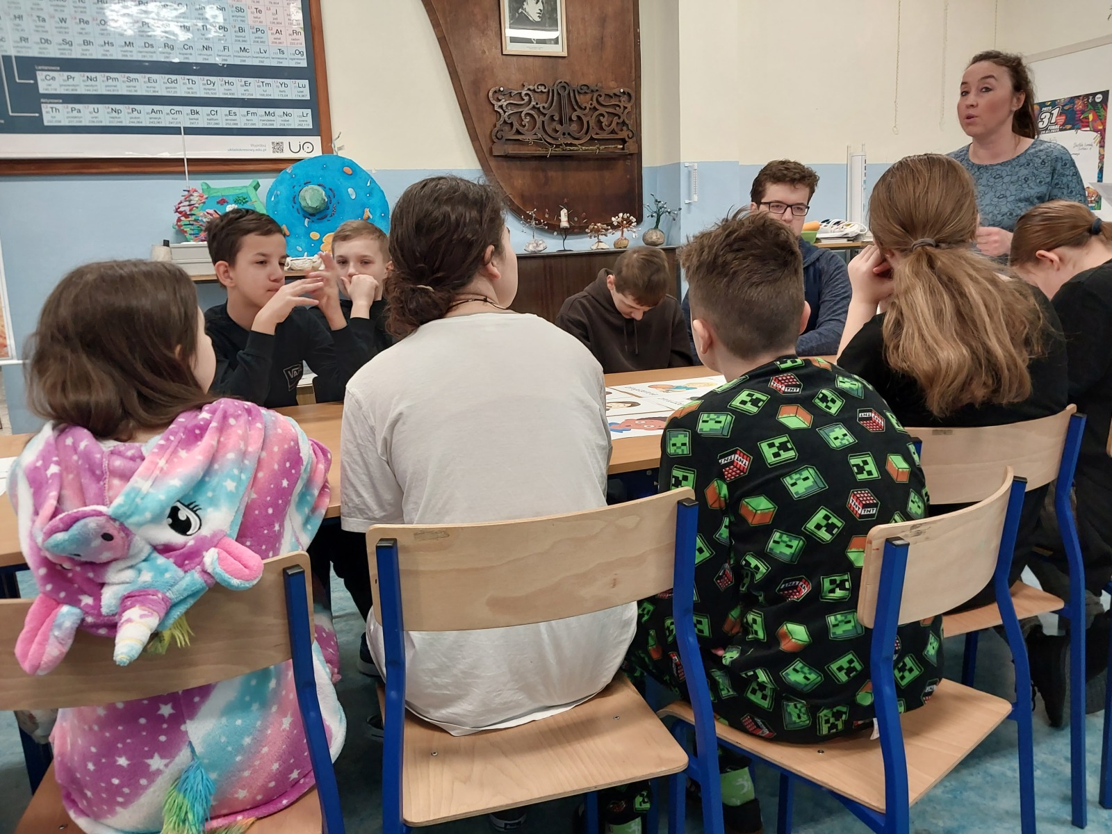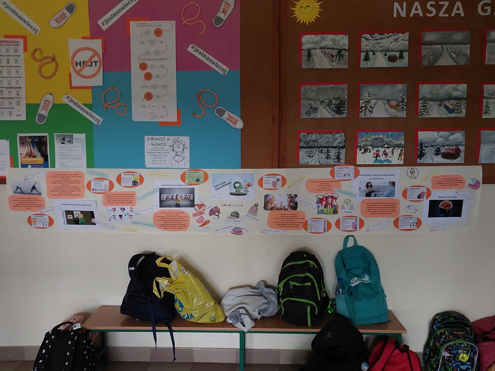 „Jak zadbać o utrzymanie zdrowia psychicznego i dobrego samopoczucia każdego dnia?” Odpowiedzi na to trudne pytanie szukali nasi uczniowie klas IV-VIII podczas warsztatów psychologicznych pod hasłem „Zdrowie w głowie”. Uczniowie nauczyli się jak rozpoznawać i nazywać emocje, które towarzyszą im każdego dnia. Dowiedzieli się, co to jest zdrowie psychiczne oraz wypracowali strategie działań, które pozwolą zachować kondycję psychiczną i dobre samopoczucie każdego dnia. Zrozumieli, że zdrowie zależy także od ich samodzielnych wyborów i podejmowanych działań. Każdy uczeń otrzymał karteczkę z pozytywna afirmacją wzmacniającą poczucie własnej wartości i budującą pozytywną samoocenę. Tego dnia, w ramach akcji zorganizowanej przez Samorząd Uczniowski; uczniowie także mogli przyjść do szkoły w pidżamach oraz kapciach, by czuć komfort w każdym aspekcie. Zajęcia zostały pozytywnie odebrane przez uczestników, którzy wyrazili zadowolenie oraz entuzjazm, co widać na poniżej załączonych fotografiach.
